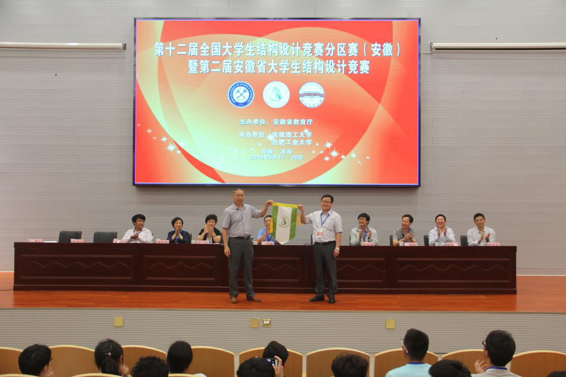 第二届安徽省老员工结构设计竞赛专家委员会主任委员、合肥工业大学土木与水利工程公司经理任伟新教授宣布第三届安徽省老员工结构设计竞赛将由皖西公司承办,7790cnm必发集团经理马芹永教授与皖西公司建筑与土木工程公司经理戈海玉教授进行了赛旗交接仪式。